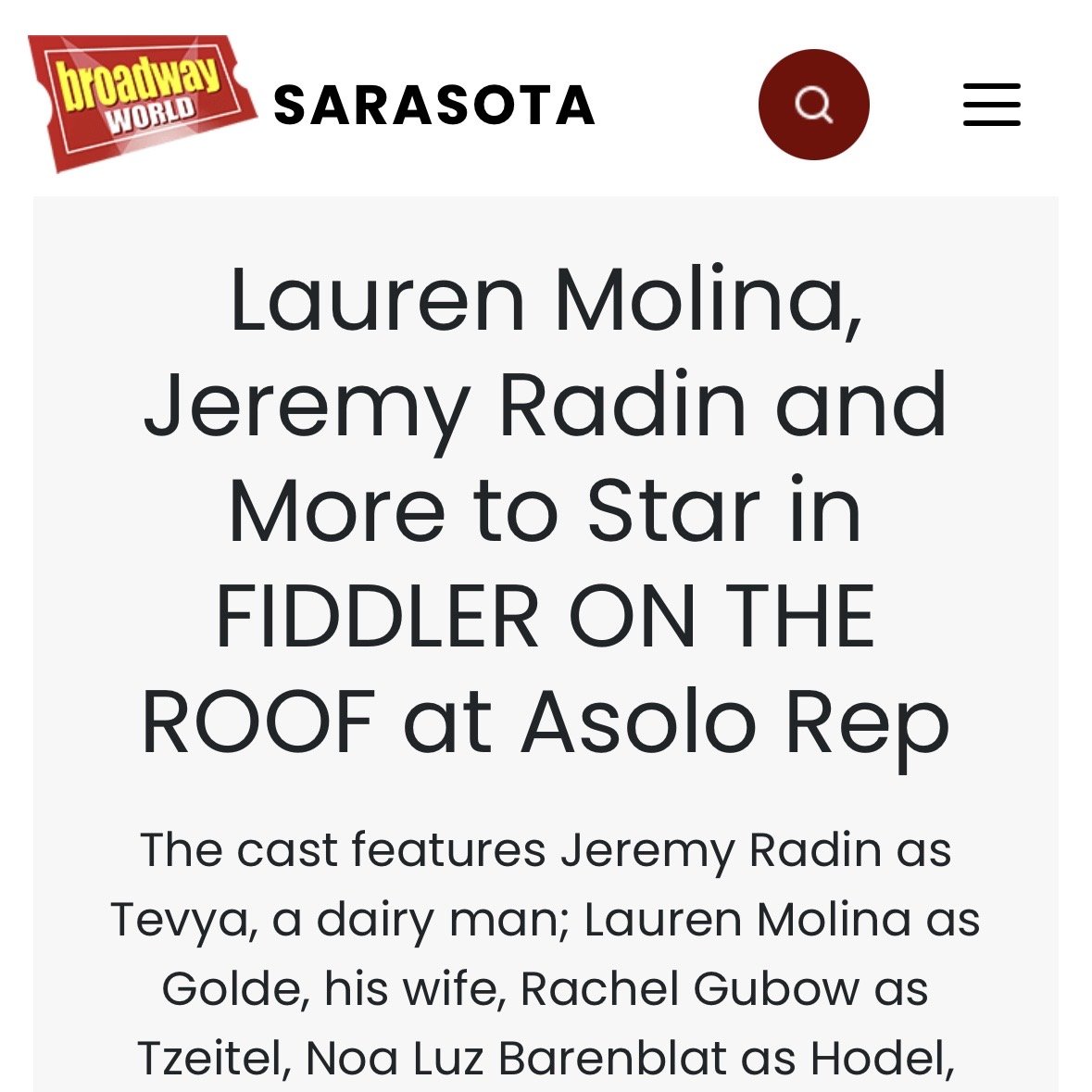 “As Chava, Noa Luz Barenblat was stellar… We see a world of emotions in a short period.”